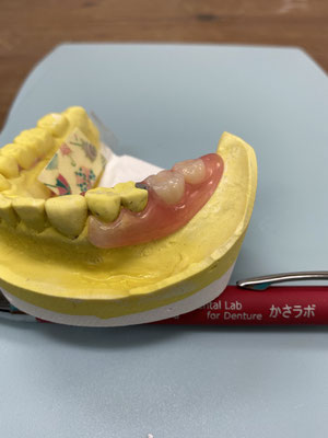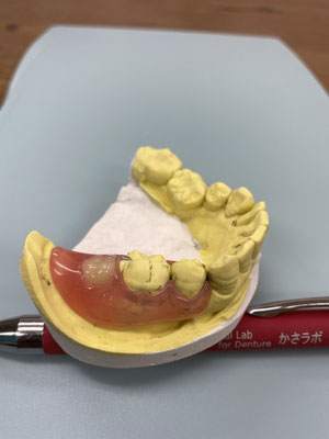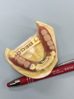 ・アンダーカットに入ったら、そこを支点として反対側のアームがスッと入って義歯が装着されます。